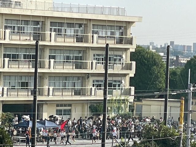 10月18日’(土)秋といえば運動会。席取り、みんなでお昼ご飯、親子で競争。パン食い競争、クラス対抗等々寒空・秋空のもと昔は一大行事。今はかたちを変え、楽しいが午前中に終了。観衆は予想以上に多い。いろいろなところ、自治会でも開催予定。散歩がてらに覗いてみよう。