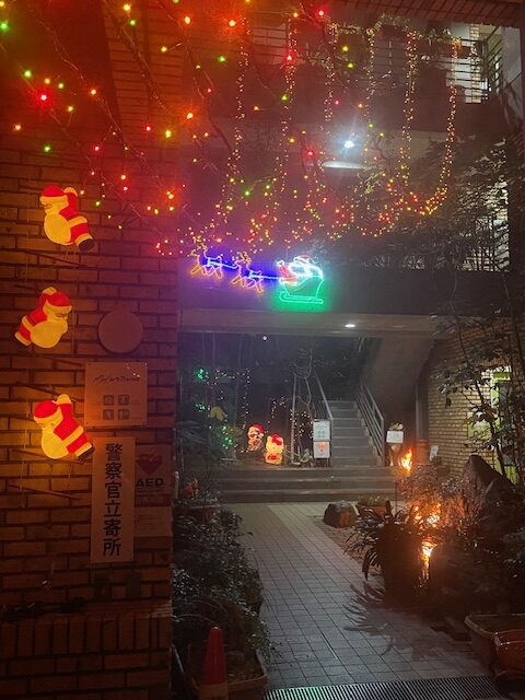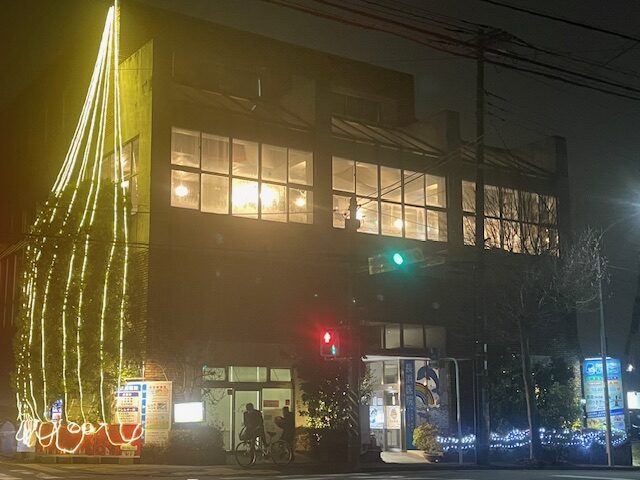 慣例のツリー、「寒い、暗い中で大きなツリーに温かなライトの輝き、いつも胸躍る思いでみております」感謝、感謝 ファンより