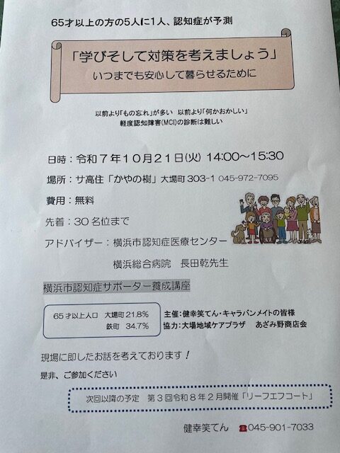 認知症サポータ-養成講座大場町地域で開始。10月21日 2025.10.19 -